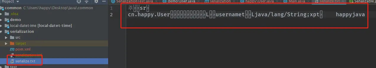 这就是序列化后,保存到外部的对象了。我们可以把它反序列化成为对象。