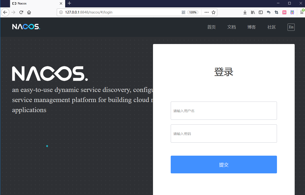 默认用户命和密码都为:nacos,登录进入后可看到管理界面