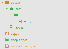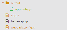 这个足够简单,进行webpack之后,会在命令的执行目录下新建output目录(如果需要的话),并将打包app.js和它的依赖,生成output-file.js放在output目录中: