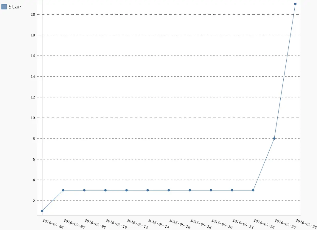 开始的时候 GitHub 上根本就没人给我留言、star、更不知道有多少看了我的项目。一个月后我意外的收获了差不多 20 个 star,我特别开心:“嗯,太好了。我写的项目有人看和关注,搞起来。“