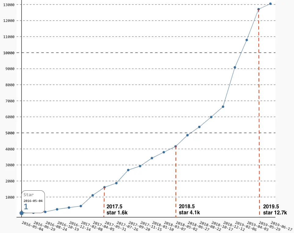 之后的一段时间项目每次发布,没什么特别多的关注度,处于平稳上升的阶段。这个时候我也一度想放弃,觉得有些无趣。其实对于开源项目的维护者来说,使用者、关注的反馈真的是特别重要的,这些反馈能证明他的努力没有白费。