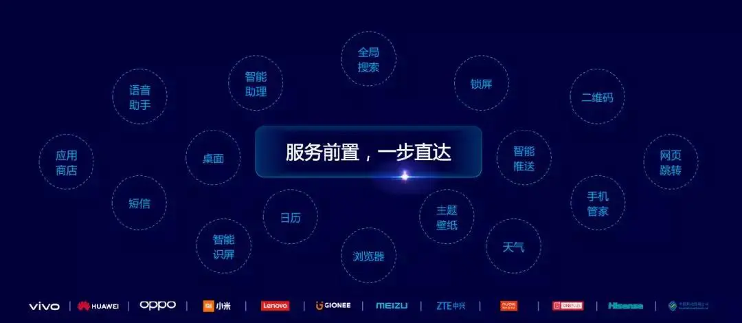 联盟启动统一的快应用标准,通过深嵌系统的SDK,让服务前置,一步直达。用户只需拥有一台支持快应用标准的手机,无需下载,即用即走。