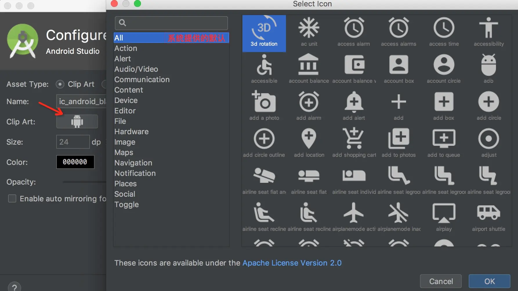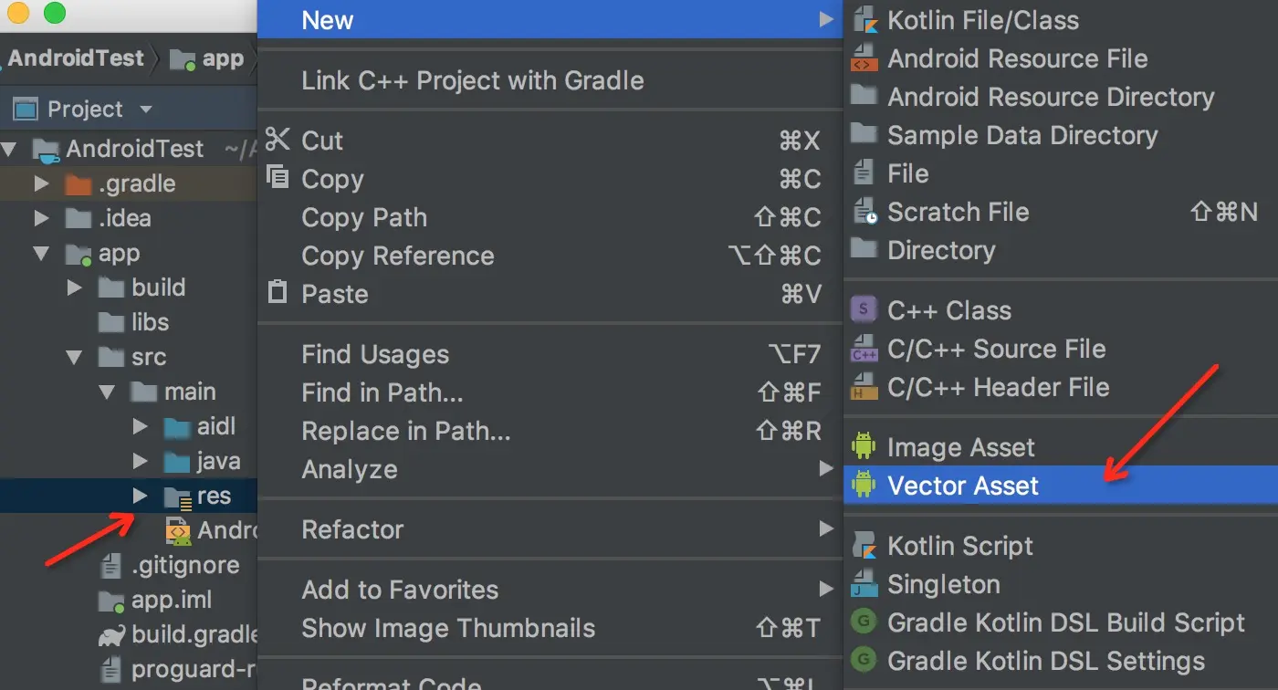 Android 5.0(API 级别 21)及更高版本会提供矢量图支持。如果应用的最低 API 级别低于以上版本,Vector Asset Studio 会将矢量图文件添加到项目中;另外,在构建时,Gradle 会创建不同分辨率的 PNG 光栅图像。
