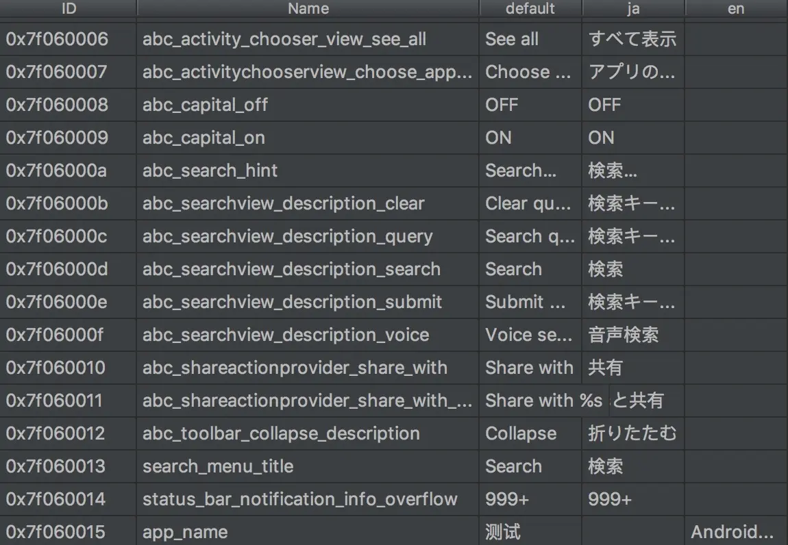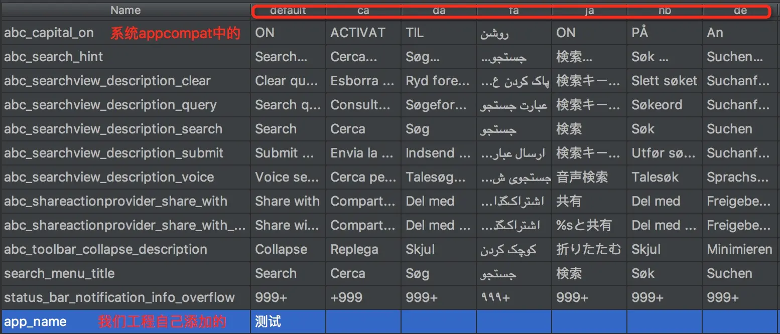 设置后生成的APK资源。系统默认语言是英语en