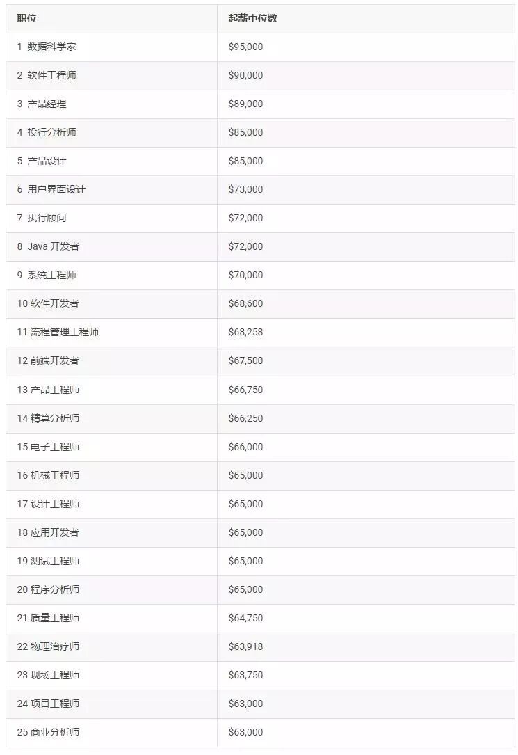 起薪最高的 25 大职位