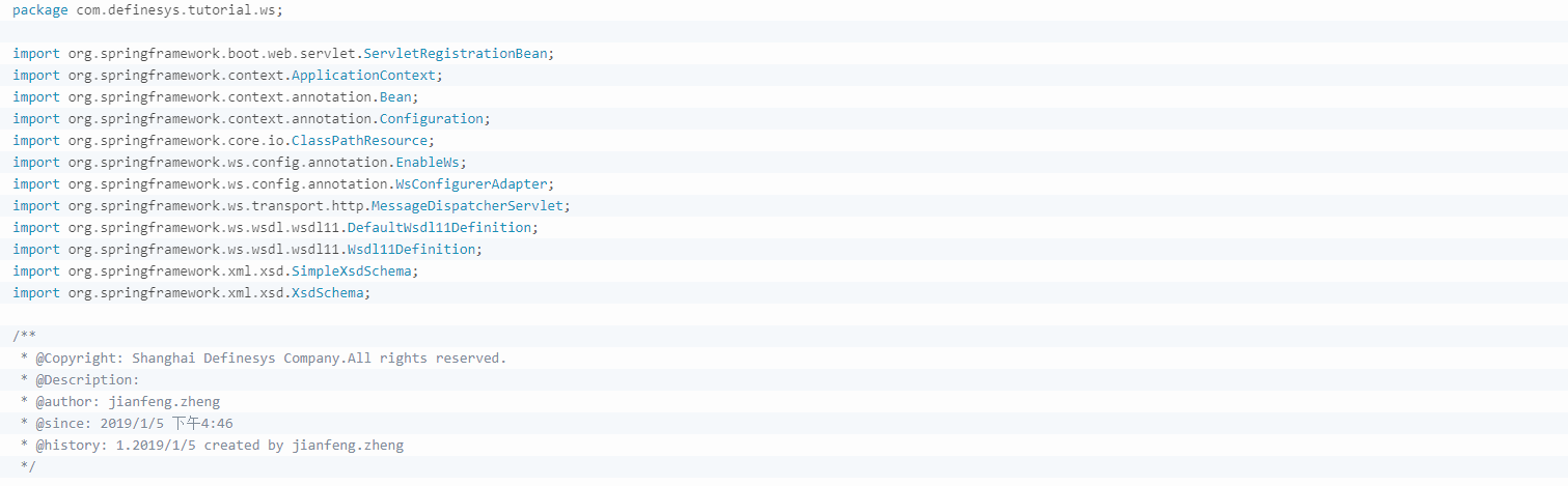 这样我们访问http://localhost:8080/ws/employee就能返回一个wsdl文件,也就是接口描述文件。在wsdl文件里,我们定义接口地址为http://localhost:8080/ws/employee-detail,接下来我们就要实现这个接口。
