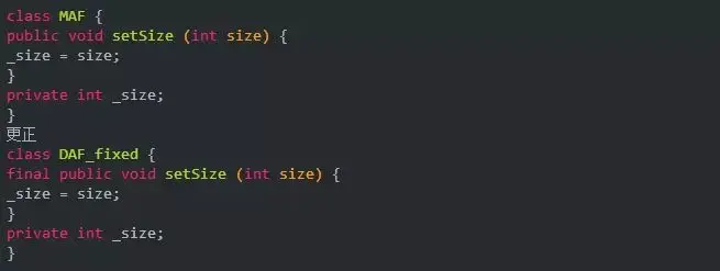 如:让访问实例内变量的 getter/setter 方法变成 ”final”: