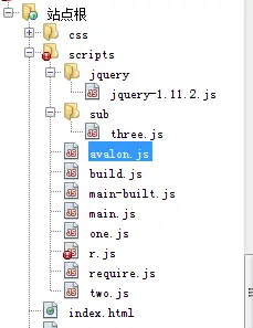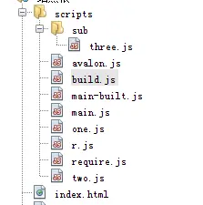 js都放在scripts目录下,换言之 html与scripts是平级。此目录下有r.js, require.js, one.js, two.js, three.js, main.js