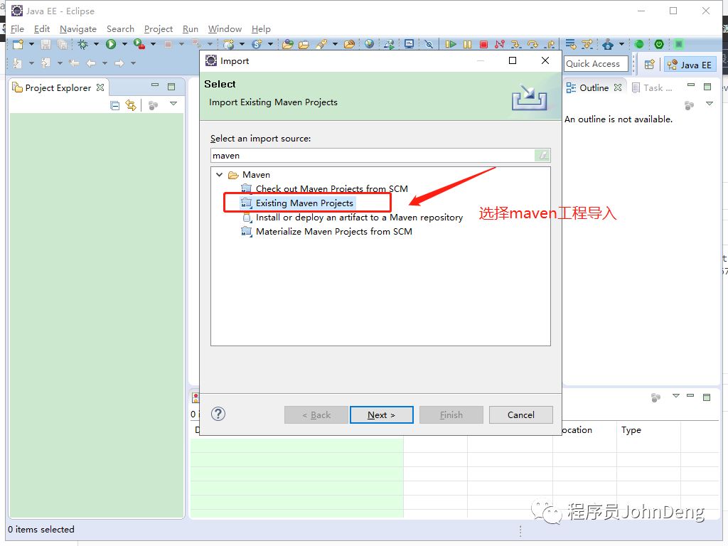 2.下载成功之后,解压到指定的位置,使用(idea,eclipse)开发者工具导入maven项目(这里使用eclipse说明)