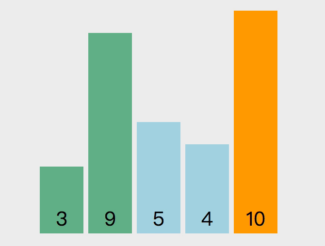 它的实现原理为:从第一个元素开始,将它与下一个索引元素比较。如果当前元素的值比下一个元素的值要大,则两者交换位置,否则位置不变。接下来,索引往后移一位,继续比较接下来两个数的值。一直重复上面的操作,直到比较到最后一个元素,因为大的元素位置会交换位置向后移,所以,最后一个元素已经是最大的。那么下次在比较的时候,不需要比较最后一个元素,只需要比较到length-2的位置