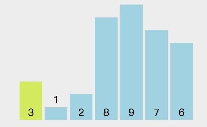 2.将索引置为1,然后向后找出,比索引1上的值小的,然后与索引1上的值交换。
