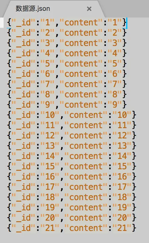 下面给大家看下我们的数据源,长什么样。其实很简单,就是简单的定义21条数据。