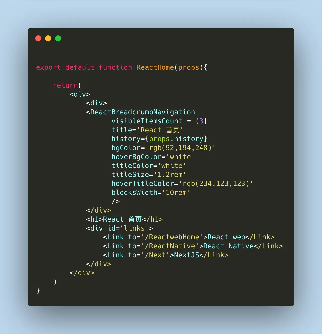ReactBreadcrumbNavigation,比如有一个 React 首页 页面: