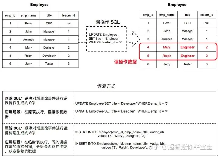 在实际的生产环境中,运维人员执行了错误的DELETE(UPDATE)语句,造成数据丢失,是较为常见的数据丢失场景。面对这种情况,通常的解决方案是通过备份恢复或者MySQL Binlog Flashback 工具逆向 Binlog 恢复数据: