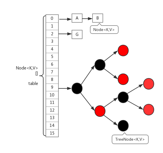 - 最后还回去判断是否到达阀值,如到达变为红黑树结构。