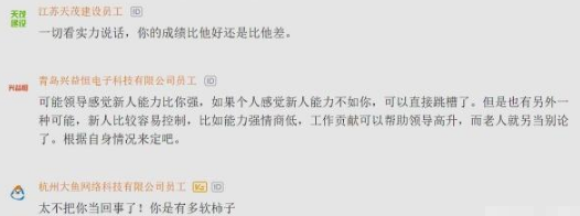 不过有的网友则非常理性的分析,如果个人感觉新人的能力不如你,就可以直接跳槽了。但另一种可能就要另当别论了,新人比较好控制,能力强但是情商低,工作贡献可以帮助领导高升,有可利用的价值。所以,不要冲动,分析自己的情况,在决定时候离职。