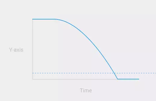 元素可以从屏幕上的起始点迅速加速,然后在对称的曲线上迅速减速,然后在屏幕外的休息点迅速减速。
