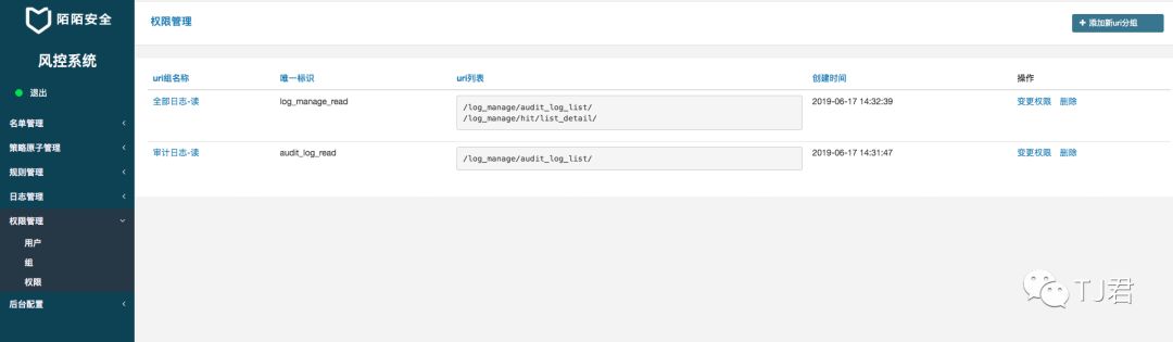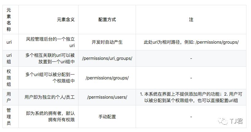 目前的权限模型包含如下元素,可在对应的页面进行配置。