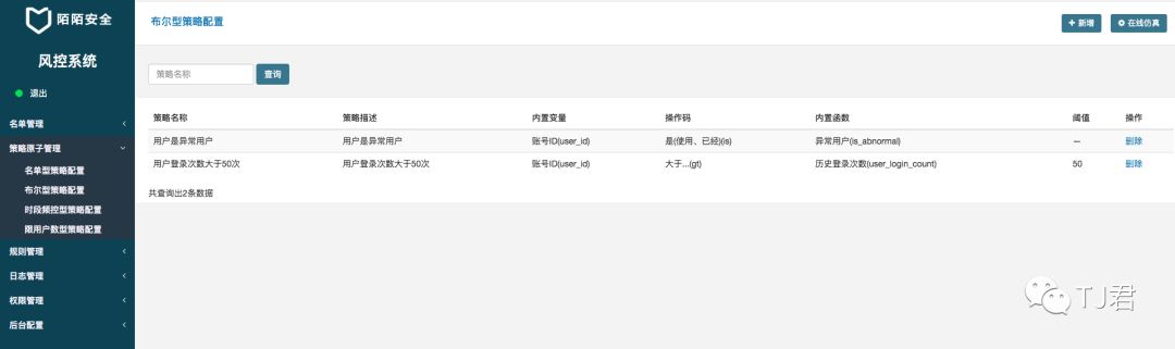内置函数是什么?就是自定义的一些逻辑判断函数,只需要满足要求返回布尔值即可。比如注册时间是否在某个范围以内,当前设备是否是常用设备。 -