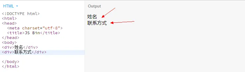 <!DOCTYPE html><html><head> <meta charset="utf-8"> <title>JS Bin</title> <style> div{ border: 1px solid red; font-size: 20px; } span{ border:1px solid green; display: inline-block; width: 5em; text-align: justify; line-height: 20px; overflow: hidden; height: 20px; } span::after{ content:''; display: inline-block; width: 100%; border: 1px solid blue; } </style></head><body> <div> <span>姓名</span> <br> <span>联系方式</span> </div></body></html>3、inline元素之间如果有任何空格、换行等看不见的字符,页面就会有空隙。