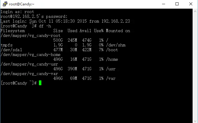 /dev/mapper/vg_candy-var 496G 71M 471G 1% /var