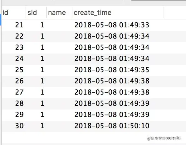 CREATE TABLE `stock_order` ( `id` int(11) unsigned NOT NULL AUTO_INCREMENT, `sid` int(11) NOT NULL COMMENT '库存ID', `name` varchar(30) NOT NULL DEFAULT '' COMMENT '商品名称', `create_time` timestamp NOT NULL DEFAULT CURRENT_TIMESTAMP ON UPDATE CURRENT_TIMESTAMP COMMENT '创建时间', PRIMARY KEY (`id`)) ENGINE=InnoDB AUTO_INCREMENT=55 DEFAULT CHARSET=utf8;