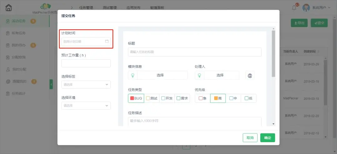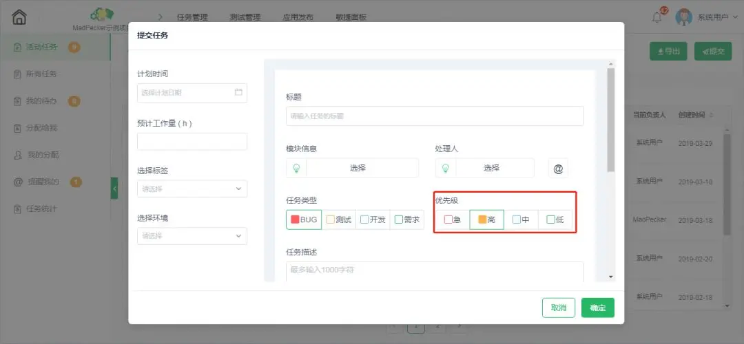 我们将四象限法则加入我们的系统,并将其浓缩为急、高、中、低四个优先级。项目成员在工作时可以根据实际情况确定工作的重点,优先处理相对较急的任务,这样的话,即使工作时间有限也可以在工作中生产最大的价值。
