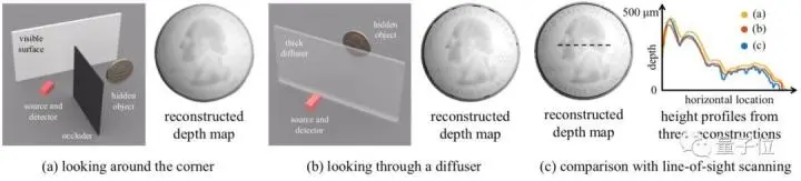 之前,量子位对一篇类似研究的Nature论文进行过报道,利用漫反射的光线信息,恢复被遮挡的物体形状。