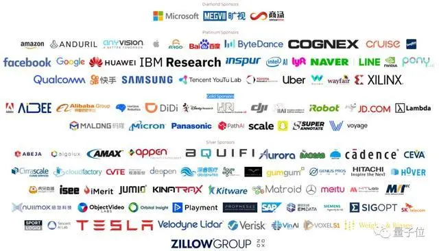 白金赞助商中,更是有大量中国公司的身影:百度、字节跳动、华为、浪潮、Pony.ai、快手、腾讯优图等等。