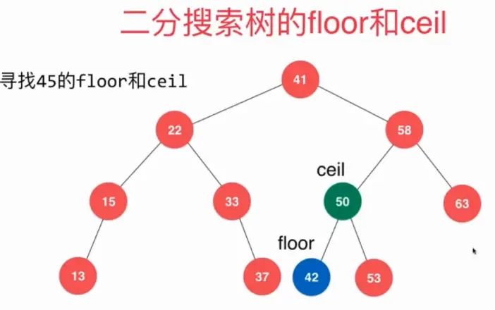 二叉搜索树floor(等于小于最接近的数)和ceil(等于大于最接近的数)