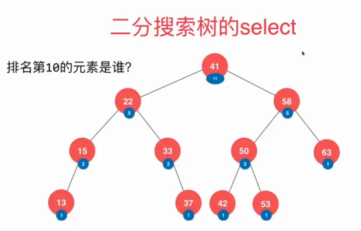 二叉树的rank(排名第几的元素),select(排名第十的元素是谁)