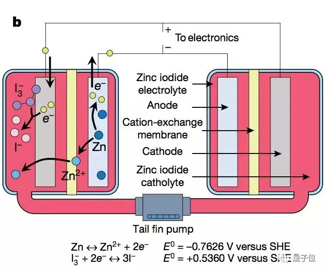 血液经过电池组,碘离子会把锌氧化。这个过程中,电子流动起来,产生了一个电压。