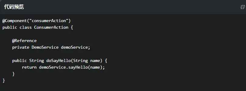 当consumer要调用对应的demoService服务时通过本地存储的提供方ip和端口连接到provider并进行服务调用后获得返回