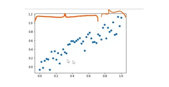 import numpy as npimport matplotlib.pyplot as pltfrom sklearn.tree import DecisionTreeRegressorx = np.linspace(0,1)y = x + np.random.uniform(-0.2,0.2,x.shape)plt.scatter(x,y)我们现在要构建一个决策树模型,这实际上是一个时间序列问题。所以我打算将左侧部分作为训练集。并将右侧部分作为我们的验证集。