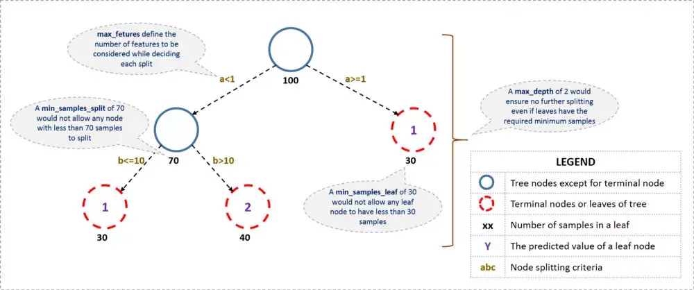 这可以通过微调树的一些超参数来完成。首先,让我们看一下决策树的一般结构: