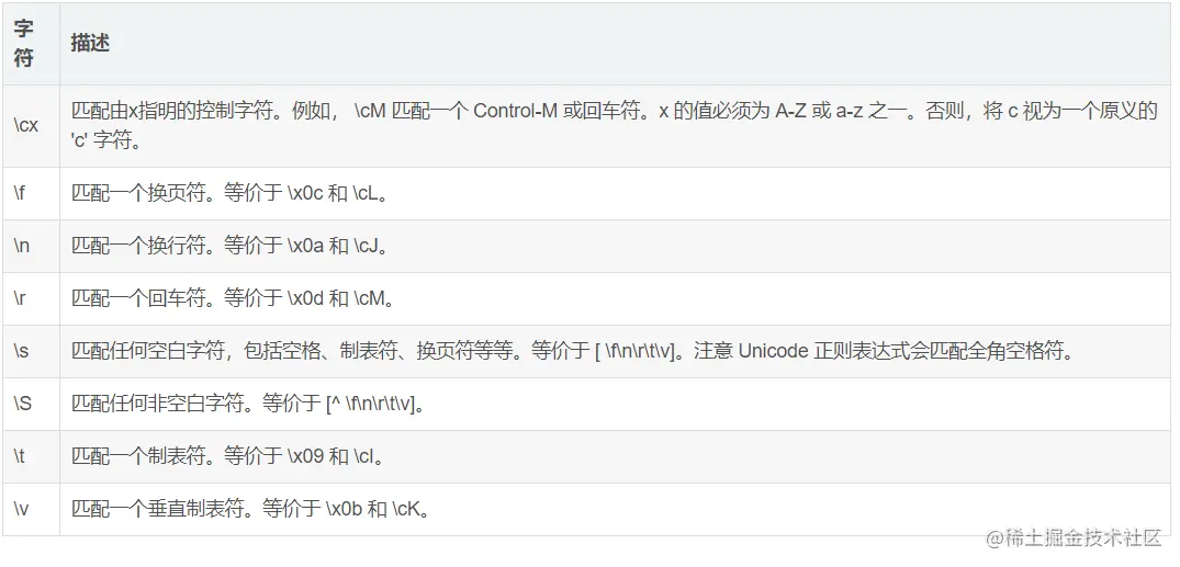 非打印字符也可以是正则表达式的组成部分。下表列出了表示非打印字符的转义序列: