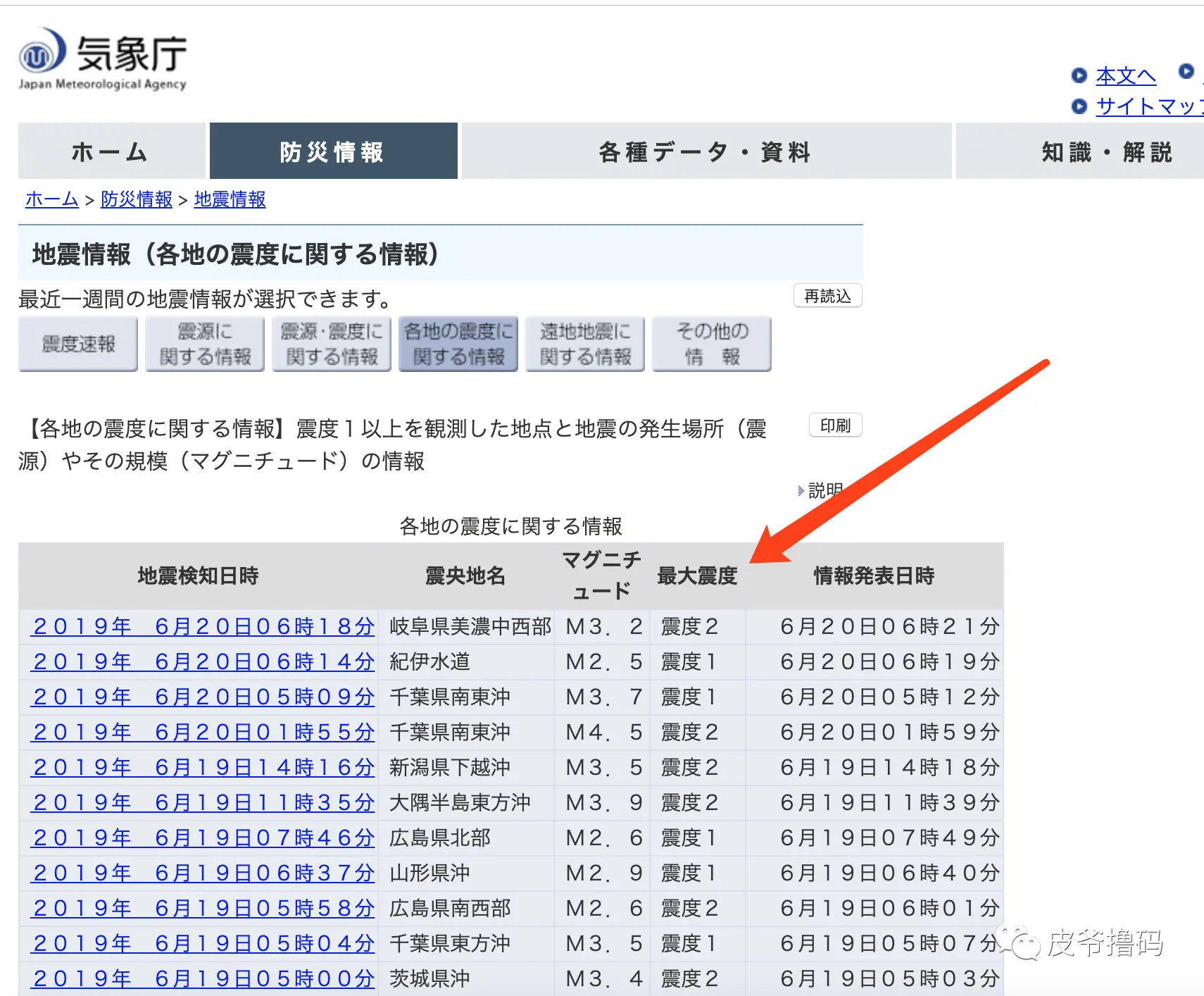 皮爷曾经写爬虫爬取过日本气象局的地震网站:http://www.jma.go.jp/jp/quake/quake_local_index.html