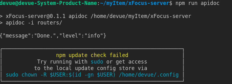 | -t, --template | 对输出文件使用模板。(默认值:“/usr/local/lib/node_modules/apidoc/template/”) |