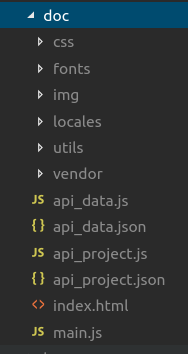一个静态的文档很漂亮的生成了,但是实际控制这个方法的是api_data.js和api_project.js。但是实际上的数据显示是由api_data.json和api_project.json这两个json文件。
