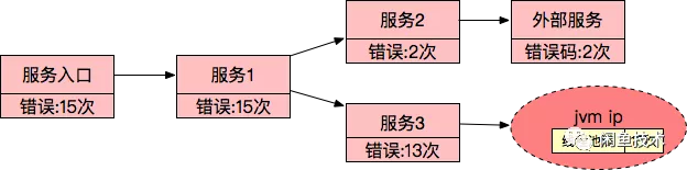 说明本次请求是由于下游jvm的线程池满导致的,但是一次调用并不能说明该服务不可用的根本原因,需要分析整体的错误情况,那就需要对图数据做实时聚合。 聚合设计如下(为了说明基本思路,做了简化处理): 1、首先利用redis的zrank能力为根据服务名或ip信息为每个节点分配一个全局唯一排序序号。 2、为图中的每个节点生成对应图节点编码,编码格式:-对于头节点:头节点序号|归整时间戳|节点编码-对于普通节点:|归整时间戳|节点编码 3、由于每个节点在一个时间周期内都有唯一的key,因此可以将节点编码作为key利用redis为每个节点做计数。同时消除了并发读写的问题。 4、利用redis中的set集合可以很方便的叠加图的边。 5、记录根节点,即可通过遍历还原聚合后的图结构。 聚合后的结果大致如下: