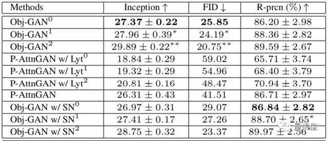 在客观指标上,Obj-GAN在大规模COCO基准测试的各种指标上优于先前的水平,Inception分数提高到了27,大大高于P-AttnGAN只有20左右的得分,FID也降低到了25.85。