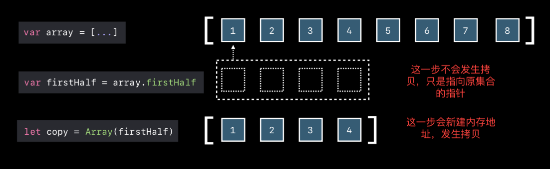我们应该只在进行临时操作的时候使用切片,因为即使原集合的生命周期已经结束,切片还是可能对原集合强引用。因此,长时间使用切片可能会导致内存泄漏。想详细了解切片的请移步此处。
