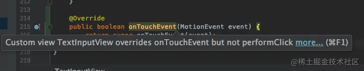 可点击View的可访问性:如果重写onTouchEvent或使用OnTouchListener的View在检测到单击时没有实现performClick并调用它,则视图可能无法正确处理可访问性操作。理想情况下,处理单击操作的逻辑应该放在View#performClick中,因为当单击操作发生时,一些可访问性服务会调用performClick。