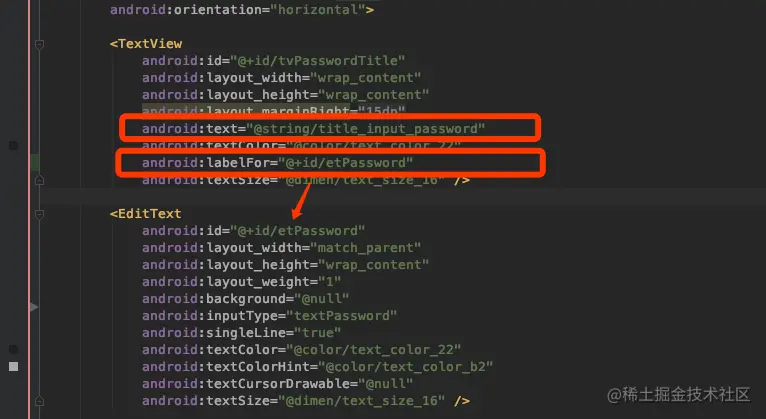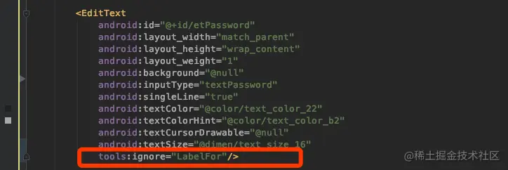 如果被指定的标签控件如TextView在另外一个layout文件中,且使用layout属性引用了EditText所在的layout文件,可以ignore这个lint检查。