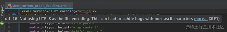 文件内BOM提醒:Lint会把文件中包含的BOM字符标记出来。因为Android工程中我们期望使用utf-8对文件和字符进行编码。BOM字符对utf-8来说不是必需的,而且有一些工具是不能正确处理带BOM字符的文本的。