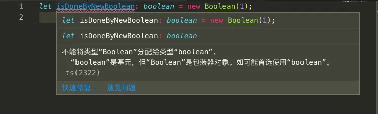 let isDoneByNewBoolean: boolean = new Boolean(1);