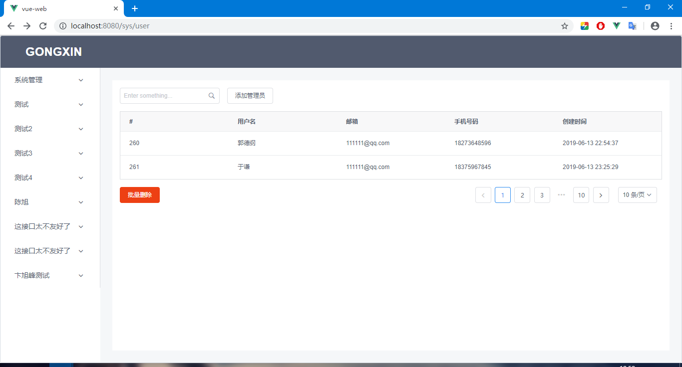 后台-欢迎页面(admin/Welcome.vue),后台-用户管理(admin/User.vue)等