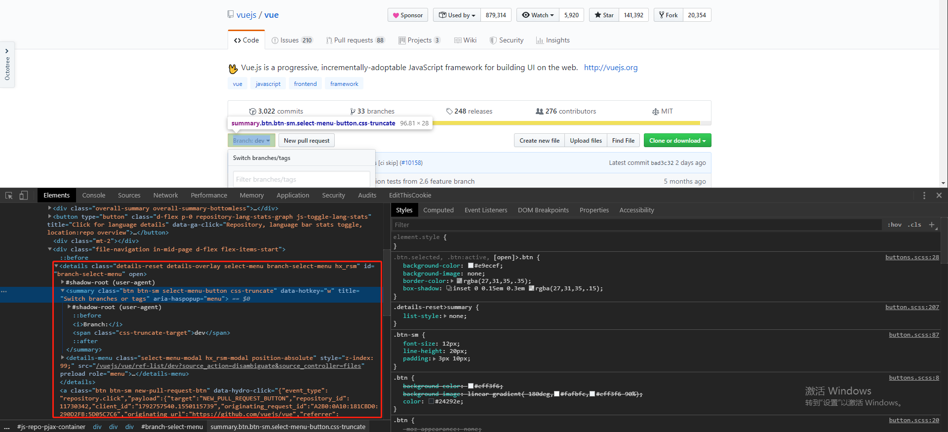 如下图所示,Github 的下拉框就是使用 <details> 和 <summary> 实现的。