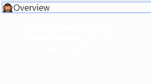<li>Cash on hand: $500.00</li>