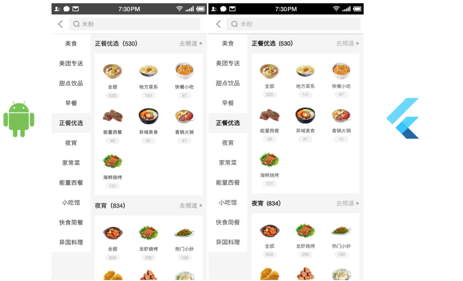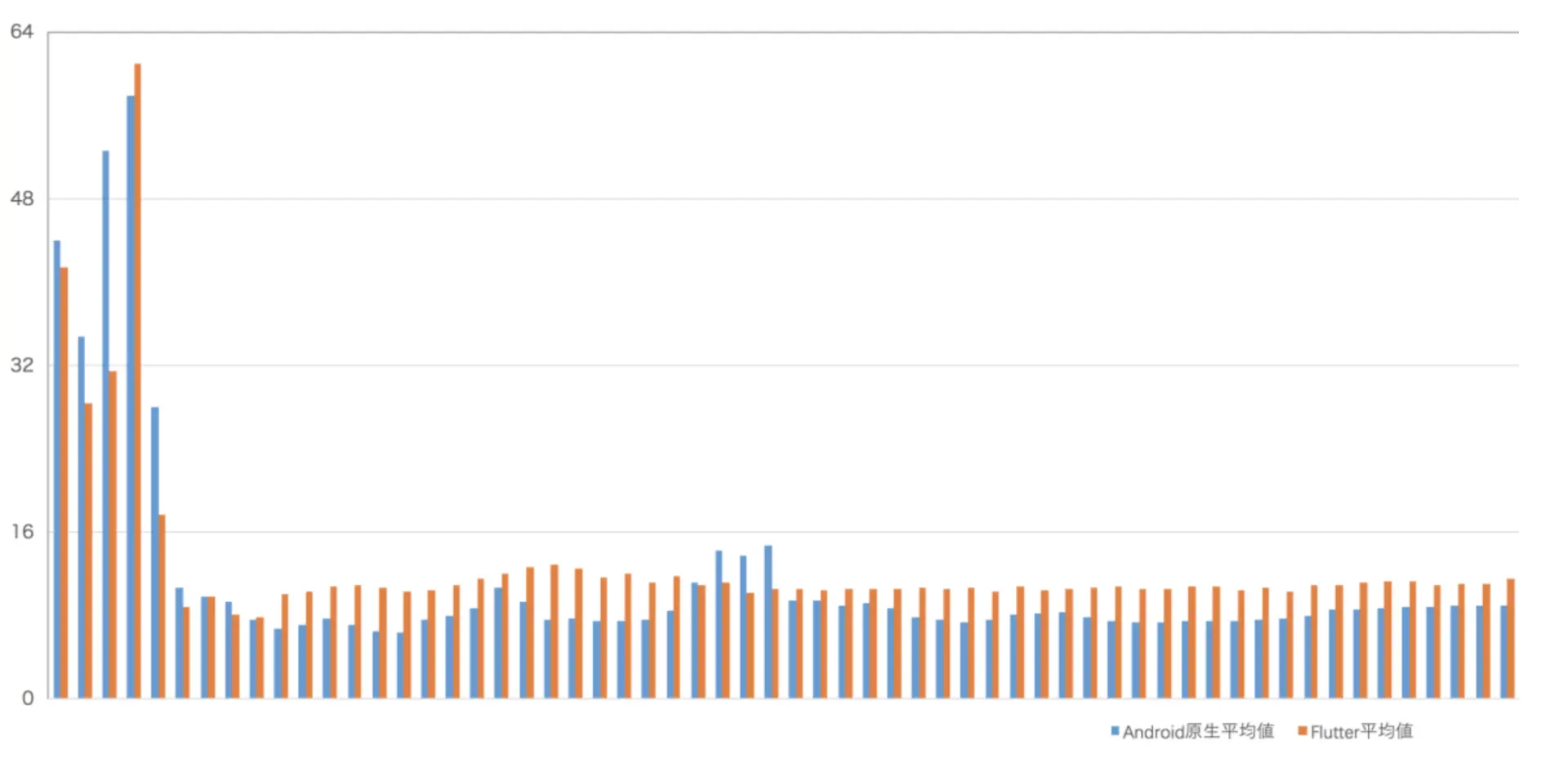 1、性能。对于开发人员,首先关注的就是性能了,在生产环境下,Flutter 将代码编译成机器码执行,并充分利用 GPU 的图形加速能力,因此使用 Flutter 开发的移动应用即使在低配手机上也能实现每秒 60 帧的 UI 渲染速度。下图展示了外卖app的同一个页面,在Android机型下flutter和原生开发的性能对比。总体来看,Flutter的性能表现相当出色,与原生开发相差无几。